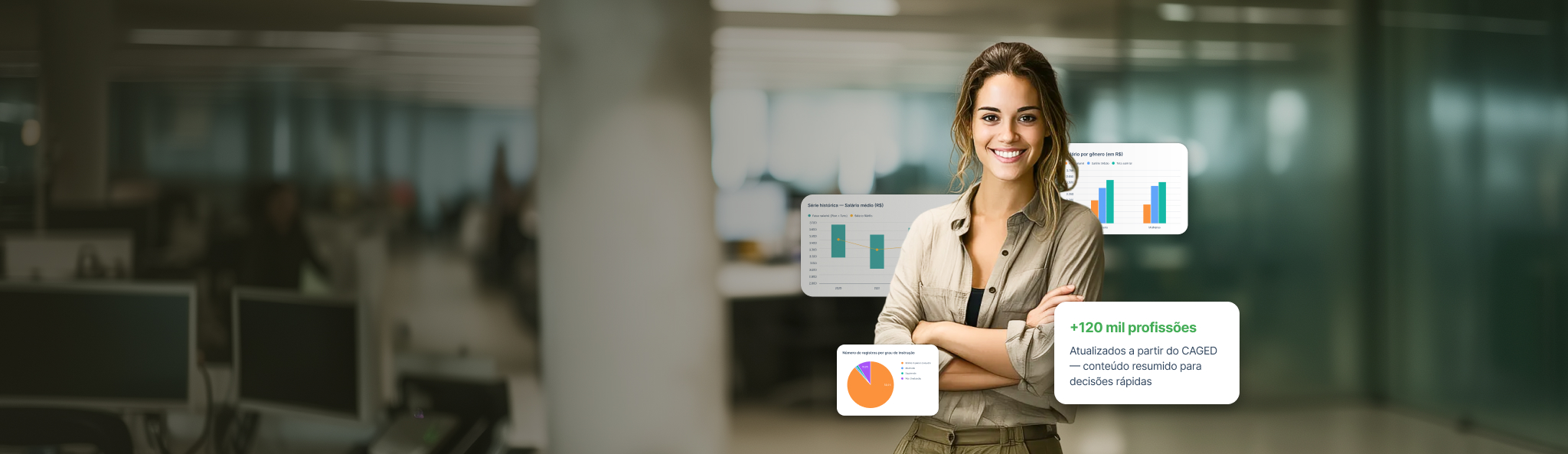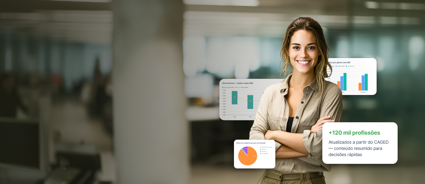 Salários de todos os profissionais, com dados por segmento, experiência, cidade e região, envolvendo salário.